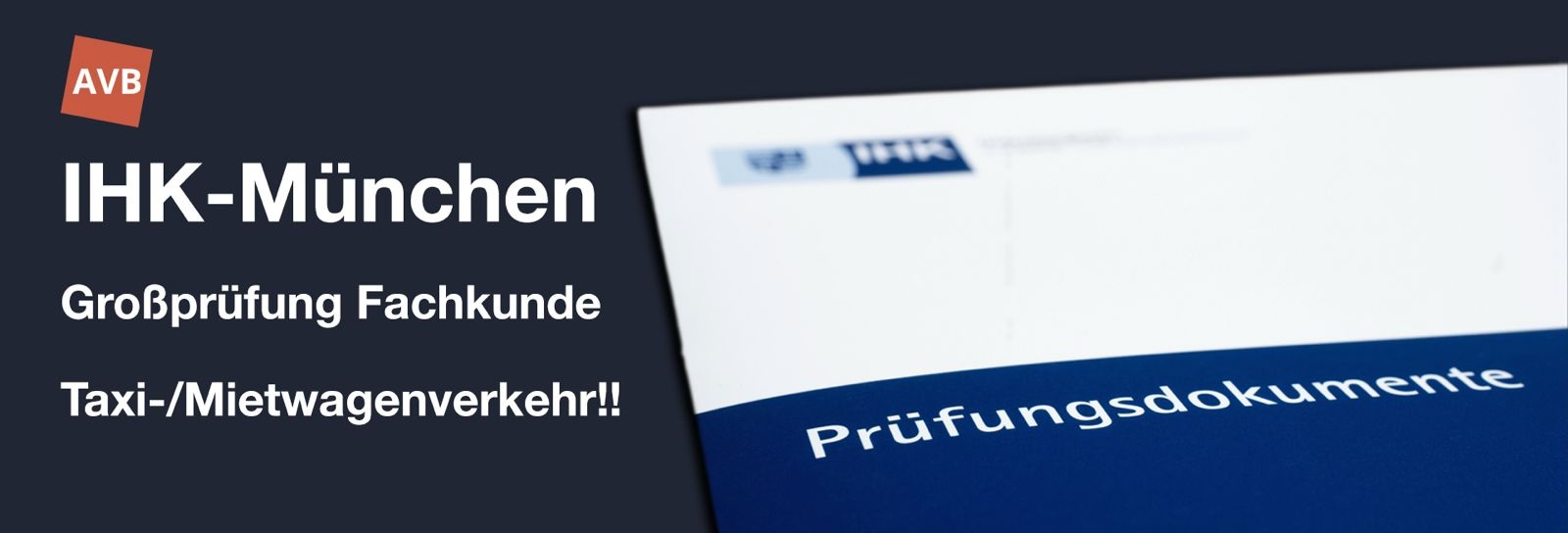 AVB Seminare bietet nun auch die Vorbereitungsseminare auf die IHK-Fachkundeprüfung in den Bereichen Güterkraftverkehr, Taxi-/Mietwagenverkehr und Omnibusverkehr in Dortmund und Nürnberg an.