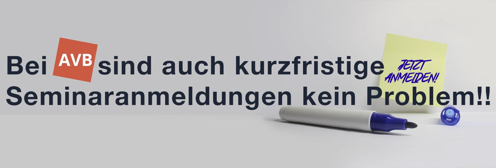 Sie möchten sich noch kurzfristig für ein AVB Seminar anmelden? In der Woche vor Seminarbeginn, oder den Samstag oder auch direkt den Sonntag vor Seminarstart? Oder am ersten Seminartag direkt vor Ort?